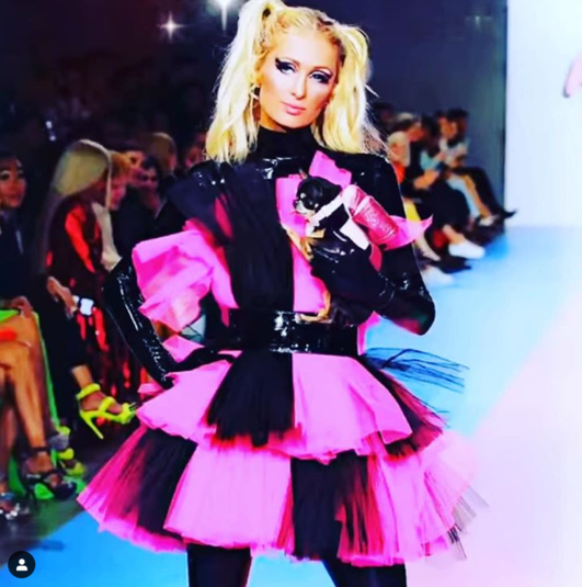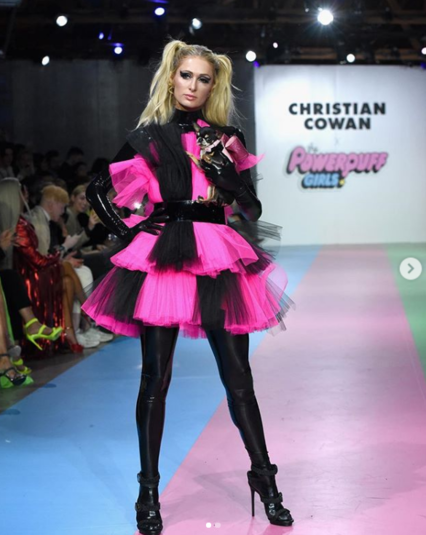 Пэрис Хилтон вышла на подиум в эффектном черно-розовом образе