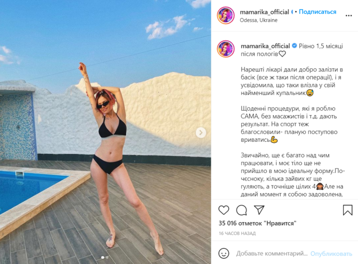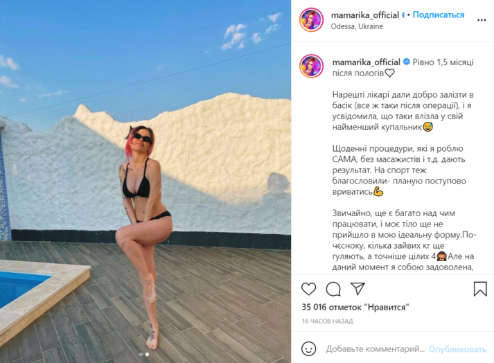 Украинская певица MamaRika, которая недавно рассказала об отношениях с мужем после рождения сына, продемонстрировала фанатам фигуру.