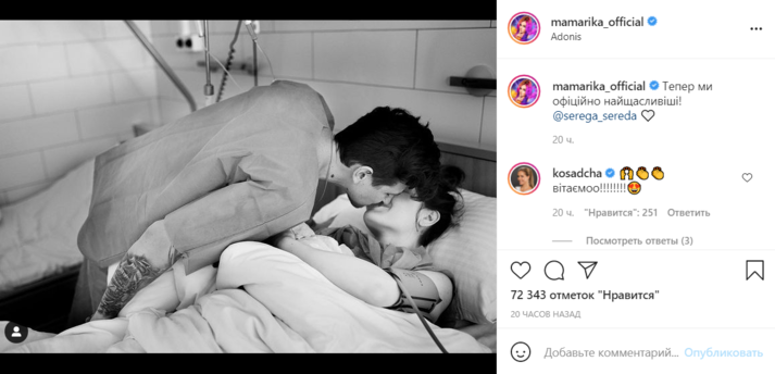 Радостным событием артистка поделилась на своей странице в Instagram. Она также опубликовала фото, сделанное в роддоме. Сергей Середа нежно поцеловал возлюбленную в тот момент, когда она держала на руках новорожденного малыша.