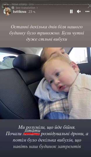«Последние несколько дней у нашего дома было тревожно. Были слышны очень сильные взрывы. Мы понимали, что идет бой. Начали летать разведывательные дроны, а потом было несколько взрывов, даже наш дом задрожал», – рассказала с сторис своей страница в Инстаграм Даша