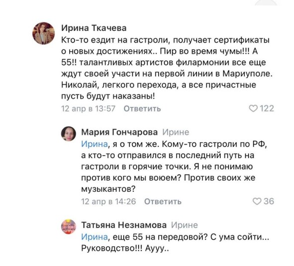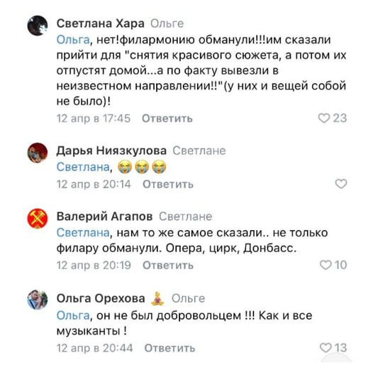 О гибели известного пианиста в Мариуполе также сообщил блогер Антон Швец. «Простые работники филармонии говорят, что «начальство филармонии» обмануло подчиненных и отправило их типа записывать сюжет на ТВ, где их «мобилизовали» и в гражданской одежде отправили на пункт. А близкие к «начальству» люди говорят, что это филармонию и ее «начальство» обмануло «руководство республики» и типа сказало дайте людей для сюжета, а самих людей украло и кинуло в мясорубку», – добавил блогер.