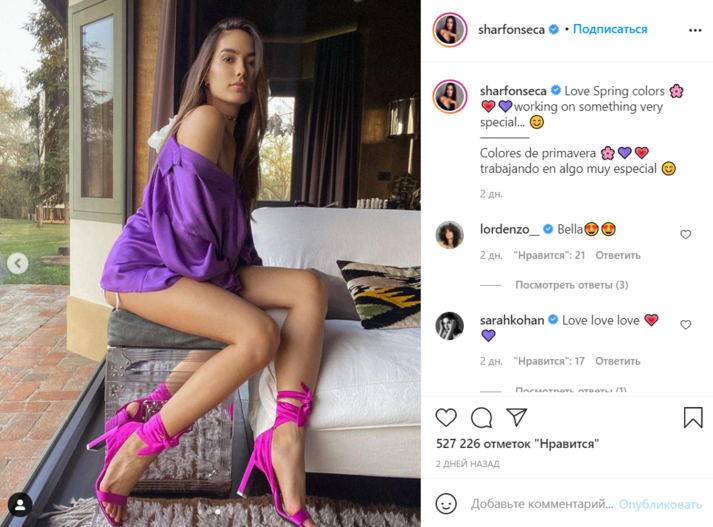 Фонсека распустила длинные темные волосы и сделала нежный мерцающий макияж. «Люблю весенние цвета. Работаю над кое-чем особенным», — заинтриговала фанатов звезда. Она позировала в разных ракурсах. На одном из кадров девушка засветила белье – трусики на завязках.