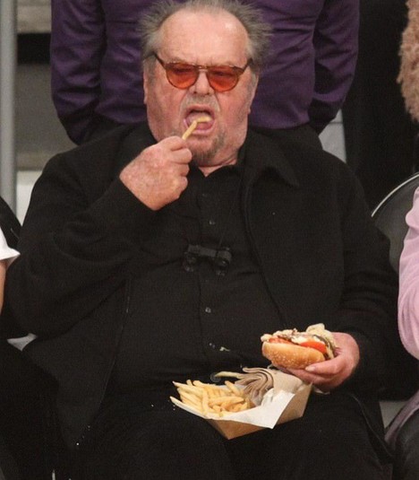 Увидевшие снимки поклонники оказались всерьез обеспокоены здоровьем прославленного артиста. Как выяснилось, за последний год 81-летний Николсон заметно располнел. При этом на протяжении всего матча актер постоянно ел, с аппетитом уплетая огромный гамбургер и большую порцию картофеля-фри.