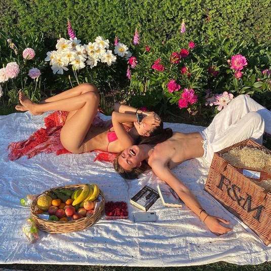 Друзья запаслись фруктами и вином, чтобы загорать было веселее. Фотограф запечатлел, как Дэмиан и его кузина смеются, корчат забавные рожицы и искренне наслаждаются отдыхом. Элизабет восхитилась яркими снимками сына с родственницей и поделилась ими с фанатами. «Эх, молодость», - подписала фото Херли.