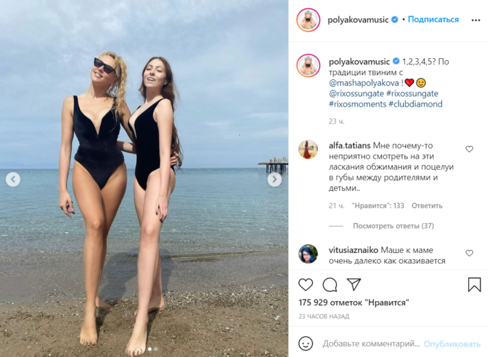 Певица Оля Полякова девичей компанией в составе дочерей Маши и Алисы и мамы Светланы отправилась на отдых в Турцию. Певица релаксирует на пляже, лакомится местной кухней и весело проводит время в компании самых близких. К слову, мама певицы вызвала фурор в сети – она покорила своим моложім цветущим видом фолловеров звездной дочери. Теперь настал черед традиционной битвы купальников Оли и ее старшей дочери Маши, ведь, как неоднократно отмечали фаны артистки, девушка растет копией знаменитости.