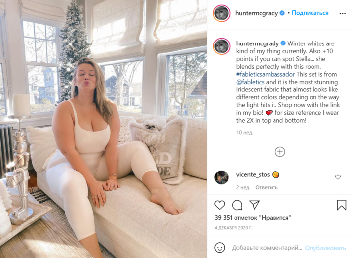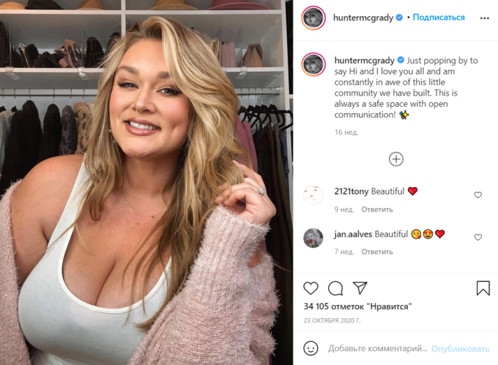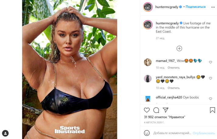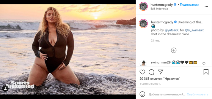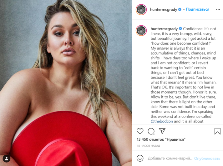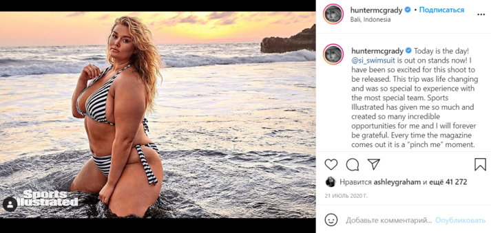 Американская плюс-сайз-модель Хантер Макгрэйди, которую называют самой полной манекенщицей спортивного журнала Sports Illustrated, раскрыла секрет достижения успеха в бизнесе вопреки лишнему весу. Об этом сообщает издание Story + Rain.