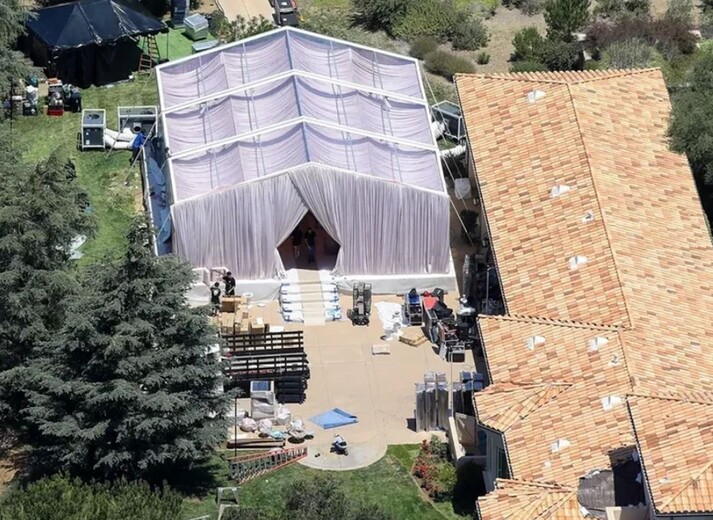 Появились также первые фото с места торжества, над которым уже вовсю кружат журналисты на вертолетах. Папарацци сфотографировали шатер, который заканчивает сооружать целая бригада рабочих. Помещение предназначено для того, чтобы скрыть долгожданный праздник от посторонних глаз.