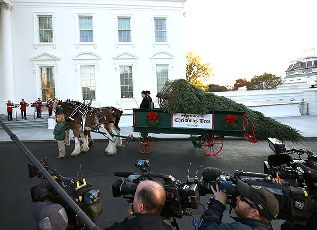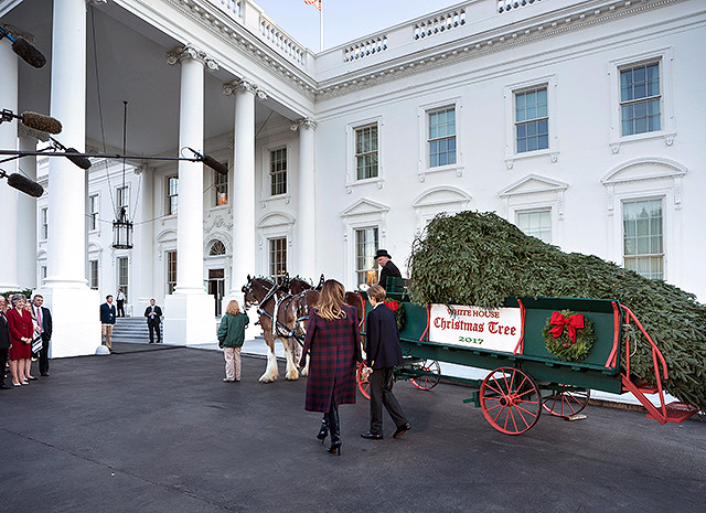 Пока конный экипаж с елкой подъезжал к резиденции президента, военный квартет играл рождественские мелодии. Мелания и Бэррон осмотрели праздничное дерево и дали символическое одобрение на его установку, которая тут же и была произведена в голубой комнате Белого дома. О радостном событии Мелания написала у себя в Twitter, сопроводив пост видеороликами.