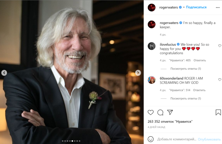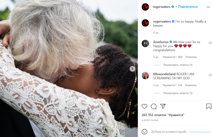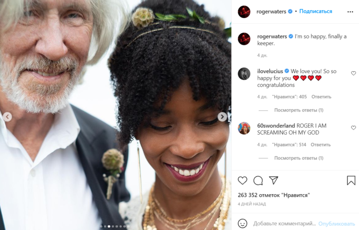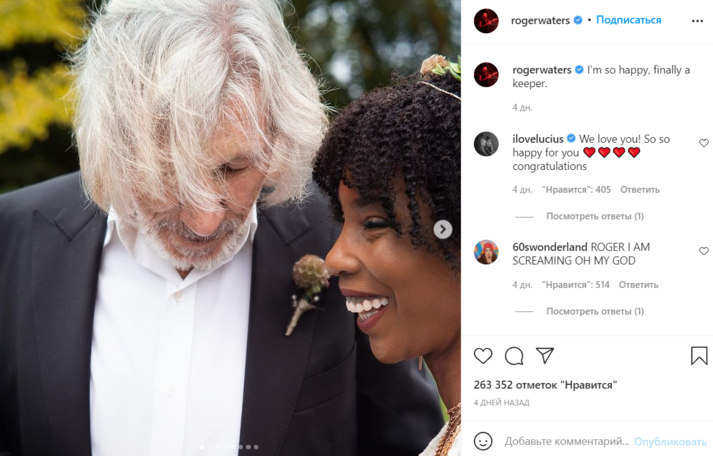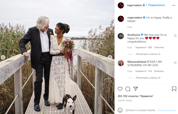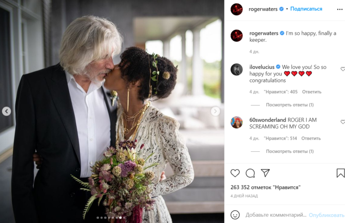 Престарелый лидер Pink Floyd Роджер Уотерс женился на молодой избраннице (фото)