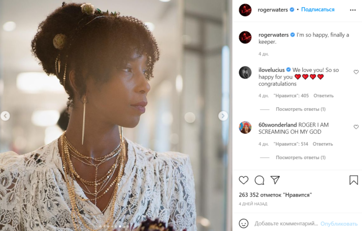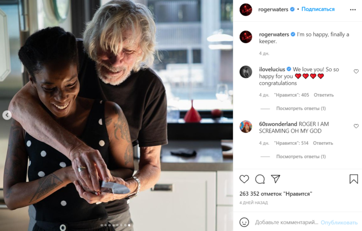 Это уже пятая свадьба Уотерса. Предпоследнее бракосочетание состоялось в 2012 году, когда он женился на актрисе Лори Дернинг. Они развелись три года спустя.