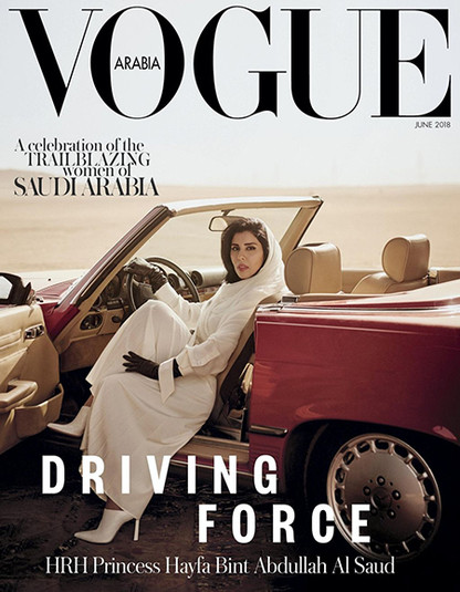 Журнал выбрал заголовок "Движущая сила" и представил принцессу за рулем красного кабриолета, что символизирует перемены, произошедшие в стране: с 24 июня саудовским женщинам будет разрешено управлять автомобилем. Борьба женщин Саудовской Аравии за право водить автомобили началась еще в 90-е годы и заняла почти 30 лет.