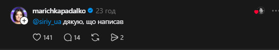 - «Дякую, що написав, Сергію», – написала Марічка Падалко.