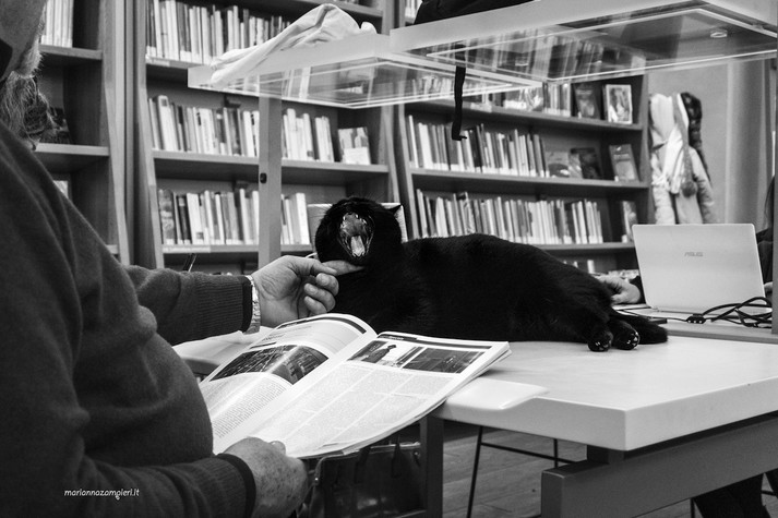 О кошках говорят, что они предпочитают одиночество, а не общение с человеком. Безусловно, для многих это справедливо, но есть и такие, которым нравится находиться там, где люди проводят трудовые будни, вне зависимости от того, насколько их присутствие удобно. Фотограф Марианна Зампьери снимала кадры для проекта «C-AT WORK» в библиотеке и в парикмахерской, в страховом агентстве и магазине одежды. Она говорит:
