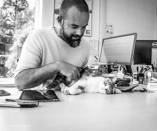 Она уже сняла фотопроект о кошках в приютах, чтобы помочь им найти хозяев, и об уличных котах Венеции. Новая серия посвящена кошкам, которые живут там, где работают люди. Иногда они расслабляются, бесцеремонно раскинувшись на оборудовании, или «помогают» своему человеку снять стресс, позволяя себя погладить.