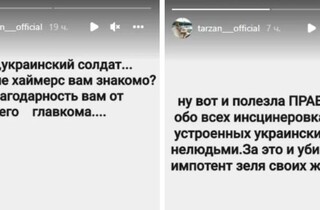 Престарелый пропутинский стриптизер Тарзан уверен, что украинская армия атаковала Еленовку. Об этом он написал на своей странице в Инстаграм. «Ну что, украинский солдат. Название хаймерс вам знакомо? Вот благодарность вам от вашего главкома. Вот и полезла правда обо всех инсценировках, устроенных украинскими нелюдями», – написал рашист Тарзан. Напомним, в ночь на 29 июля раздался взрыв на территории бывшей исправительной колонии в поселке городского типа Еленовка. Было уничтожен клрпус, в котором находились украинские военнопленные, выведенные из Азовстали в Мариуполе. Россия обвинила ВСУ в обстреле исправительной колонии. В Украине заявили, что взрыв в Еленовке был российским террористическим актом.