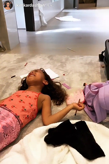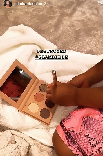Ким настолько поглощена развитием своего косметического бренда, что малышке Норт, похоже, передалась ее страсть к теням и тональным средствам. Зимой Кардашьян рассказывала, что Норт хочет стать визажистом. В подтверждение своих слов Ким показала поклонникам в Instagram первый пошаговый мастер-класс Норт по макияжу.