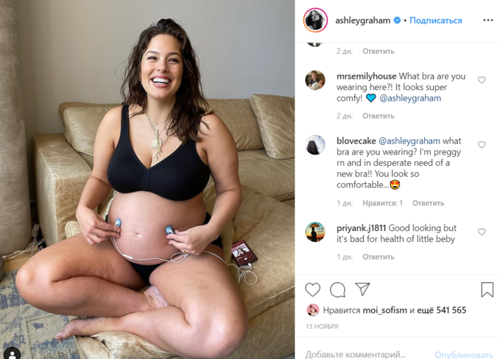 Пышнотелая модель Эшли Грэм призналась, сколько набрала за беременность