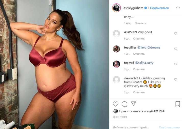 Эшли прибавила больше 22 кило. «И знаете что? Мне все равно! Я никогда не чувствовала себя лучше, чем сейчас», - призналась Грэм в Instagram.