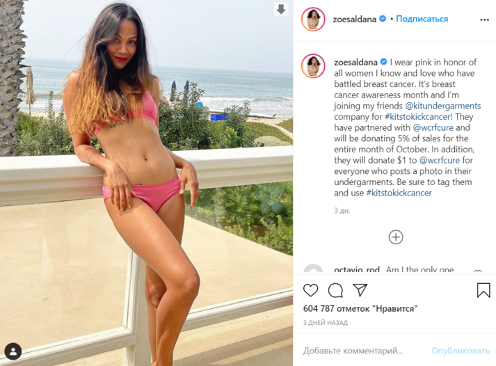 Знаменитости начали массово публиковать фотографии в нижнем белье розового цвета, принимая участие в благотворительной акции по борьбе с раком. На размещенные в Instagram кадры обратили внимание в Page Six.