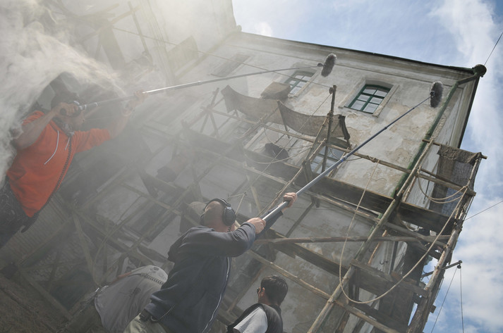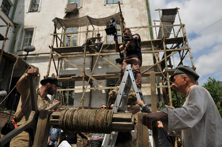 К тому же, нужно было не просто построить, а создать вид строительных лесов, которые стоят не первый месяц. Надежно их выстроить, чтобы они выдерживали актеров, а не просто стояли для фона. И создать площадку для трюка, поскольку знакомство Андрея Жадана и Алексея Косача происходит при достаточно драматических событиях. Так что было много требований от каскадеров.