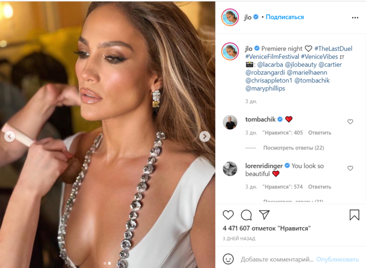 Раскрыт секрет роскошного платья Лопес на кинофестивале в Венеции