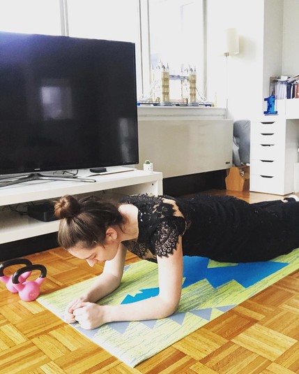 В своих постах 32-летняя Люси Роджерс позирует в квартире в разных нарядных платьях. Так, на одном фото она запечатлена в черном платье в пол, лежа на диване с ноутбуком. На другом снимке - сидит в ванной в синем платье с бантом, а на третьем изображении женщина занимается спортом в изумрудном наряде с цветочным принтом.