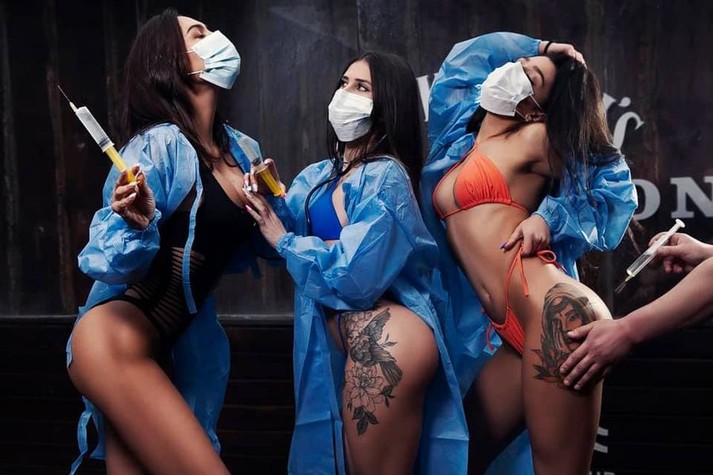 По словам ресторатора, примерно за полгода до появления первой вакцины от коронавируса он вместе со своей командой придумал «спасательную стратегию» – «волшебный укол в попу, который всех спасет». Так Радуцкий объяснил концепцию снимков, на которых девушки в купальниках, медицинских халатах и масках делают друг другу уколы.