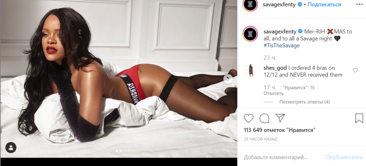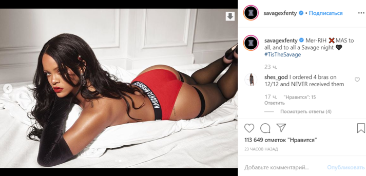 Рианна с обнаженной грудью поздравила фанатов с Рождеством