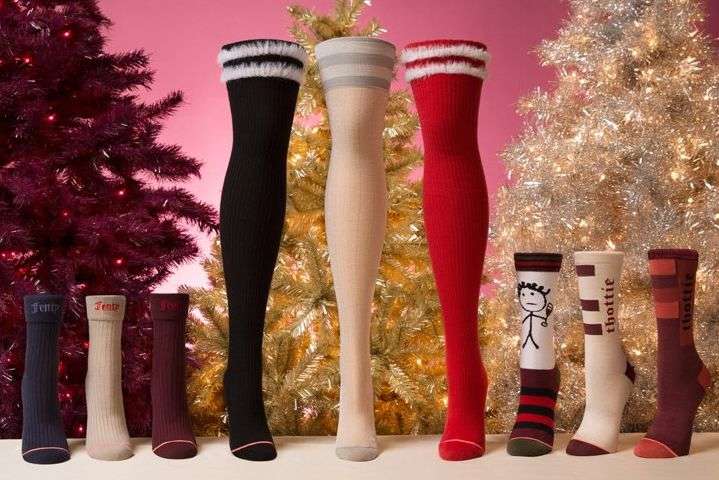 В цветовой гамме присутствует бордовый, темно-синий, сочетание ярко-красного с белым (как наряд Санты) и кремовый. Модели всего две — короткие носки и сексуальные чулочки, оббитые мехом.