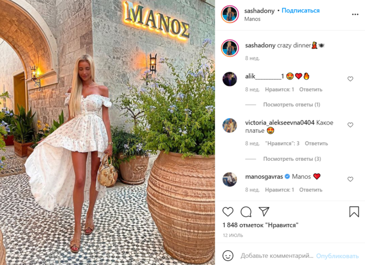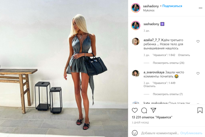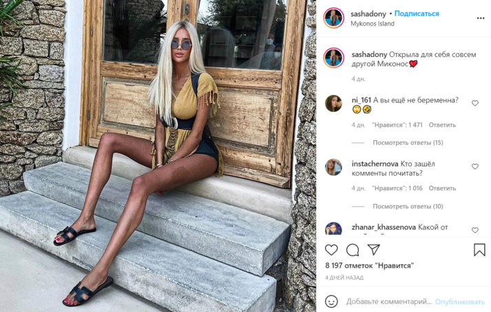 Саша имеет стройную фигуру, любит путешествовать и красиво проводить свободное время. По информации Peopletalk, Саша встречается с богатыми мужчинами, поэтому многие пользователи сети предполагают, что она занимается эскорт-услугами.