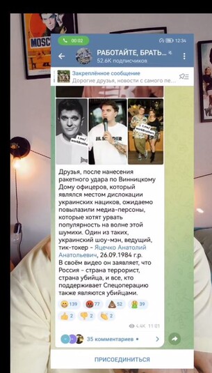 «Пришла популярность, откуда не ждали. Мои данные разместили в нескольких группах и сейчас происходит атака ботов на мою страницу в Инстаграм. Так же пытаются сломать мой телеграм. Постоянно приходят сообщения от телеграм, чтобы я никому не отдавал код. Затем слили все мои данные, телефон моей мамы, моей жены. Им приходят сообщения с угрозами: «Чеченцы за вами уже идут, готовьте гробы». Есть даже адреса: и мой, и даже мой старый криворожский адрес. Все это слили в разные каналы и сейчас активно прессуют», – рассказал Анатолич.