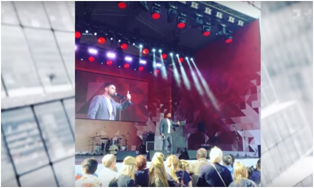 На вопросы недоумевающей ведущей, как певцу пришло в голову выступать на 9 мая в стране-оккупанте, Виталька ответил, что полетел вовсе не в День памяти, а в День победы, поскольку именно этот день является «большим праздником в семье».