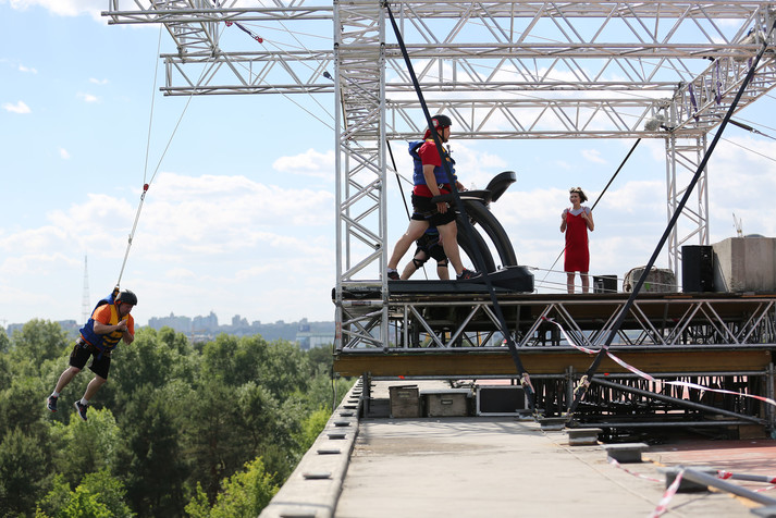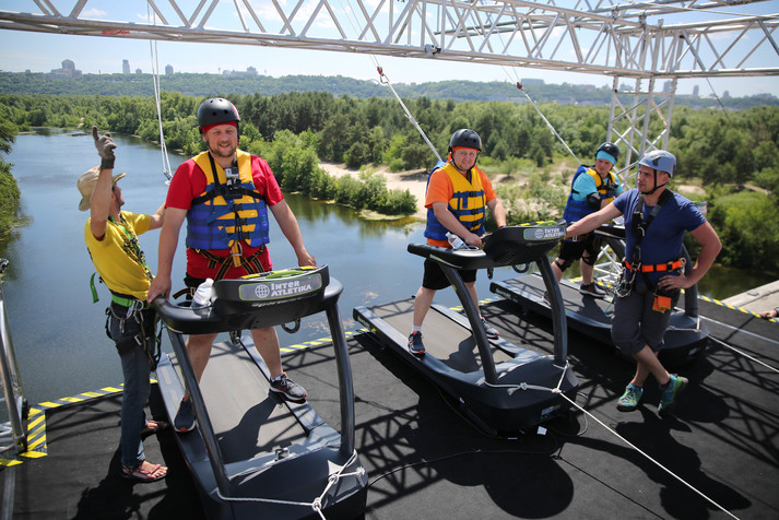 Участники испытания должны будут отвечать на вопросы – что сделают их жены и мужья: поддадутся соблазну или устоят. За неправильные ответы беговая дорожка будет ускоряться, устоять станет сложнее и кто-то из участников полетит вниз с моста!
