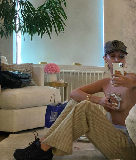 После Недель моды в Милане, Париже и Лондоне супермодель Белла Хадид решила устроить себе отдых. Звезда побаловала себя калорийной едой. Сестра Джиджи Хадид поделилась селфи, на котором она запечатлена топлес. Звезда позировала сидя прямо на полу в одних брюках и кроссовках.