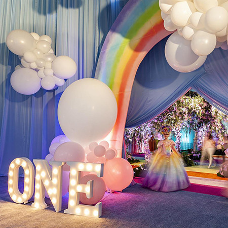 Еще первого февраля дочери 21-летней Кайли Дженнер и 26-летнего Трэвиса Скотта, Сторми, исполнился год – тогда родители устроили для малышки тихое семейное празднование, а вот шумную вечеринку по этому поводу решили отложить на несколько недель. В минувшие выходные грандиозный праздник наконец состоялся: Кайли и Трэвис пригласили всех родных и близких в настоящий Стормиворлд, на время выстроенный в большом шатре на свежем воздухе.