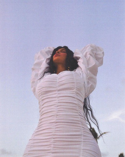 Кайли сидит на бортике бассейна, целомудренно скрестив ноги и прикрыв бюст руками. «Отпускное настроение», – подписала она фото.