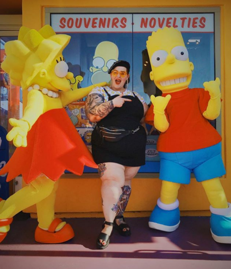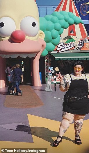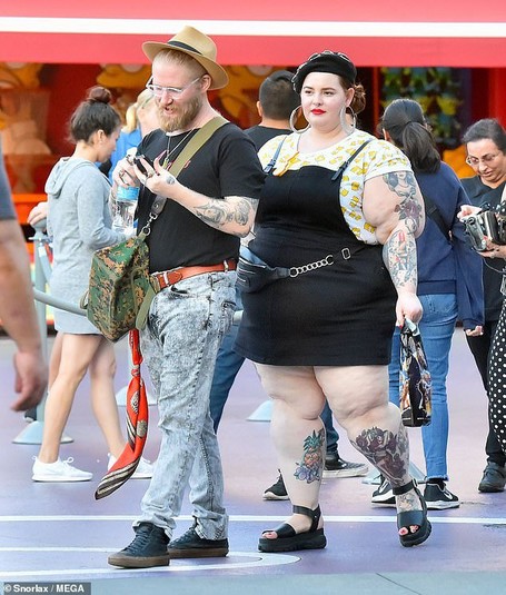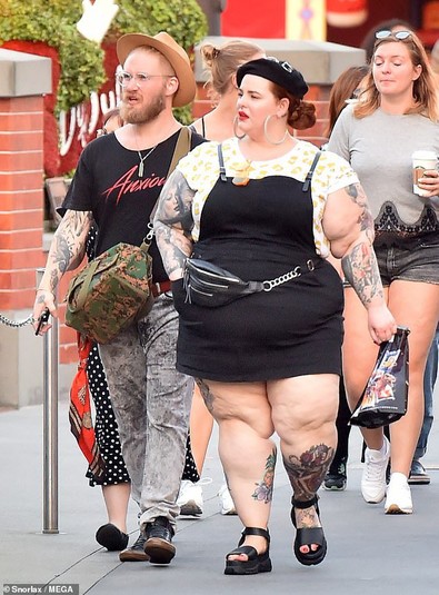 Одна из самых эпатажных моделей плюс-сайз Тесс Холлидей вышла со своим бойфрендом на прогулку в парк развлечений. Посетителей привлекла одежда модели, которую та выбрала. Тесс нарядилась в мини-платье, которое дополнила босоножками на платформе и беретом.