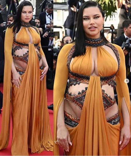 Модель и бывший «ангел» Victoria's Secret Адриана Лима (четвертое фото) сейчас беременна в третий раз. И, явно вдохновившись опытом недавно родившей Рианны, решила, что Каннский фестиваль – это отличное место, чтобы заявить о своем интересном положении. Для своего эффектного появления она выбрала архивный наряд от ливанского модельера Николаса Джебрана 2008 года. Платье цвета куркумы специально расширили в области живота, дизайнер добавил в эту зону украшение с металлическими деталями. «Голое» платье вызвало споры модных критиков: не все сочли образ беременной знаменитости удачным.