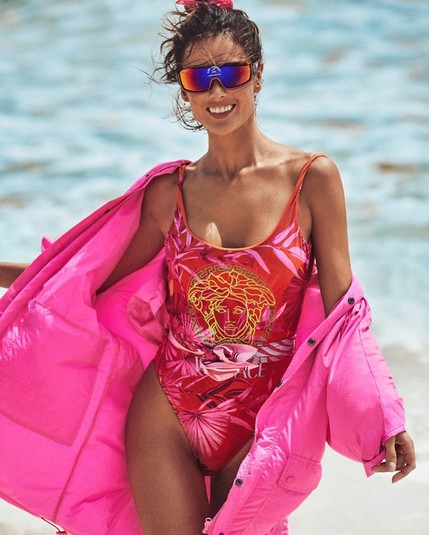 39-летняя знаменитость попозировала спиной к фотографу в слитном купальнике золотого цвета. Ее запечатлели на песчаном пляже на фоне моря. Автором съемки выступил испанский фотограф Марио Сьерра, который постоянно сотрудничает с модным журналом Elle.