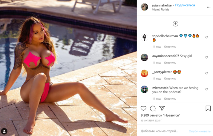 Инстадива Авианна Элиза опубликовала фотографию в купальнике собственного дизайна pentaquini: название образовано от слово pentagon («пятиугольник») и bikini («бикини»).