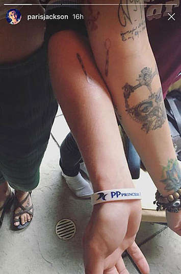 На днях в разделе Stories в аккаунте 19-летней наследницы Майкла Джексона появились кадры, на которых видно, что дочь короля поп-музыки и ее 26-летний крестный отец сделали одинаковые татуировки.