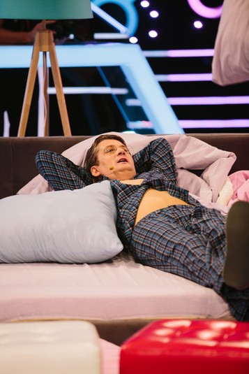 На съемках проекта Нового канала Андрея Шабанова, Антона Савлепова и Игоря Кондратюка раздели и усадили на одну кровать. Компанию мужской команде «Хто зверху?» составили Регина Тодоренко, Руслана и Ната Смирина. Но всем участникам было вовсе не до смеха, танцев на кровати и битвы подушками. У них была другая задача – одеться в пижаму (поначалу участники сидели в одном нижнем белье), а потом найти среди немалого количества реквизита пульт от телевизора.