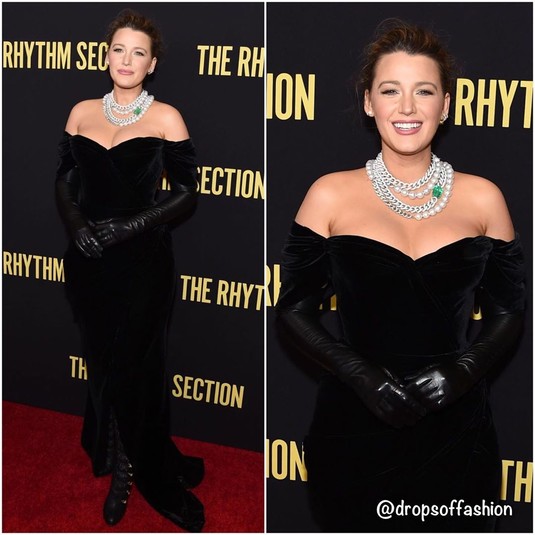 Блейк Лайвли впервые вышла в свет после рождения третьего ребенка. Поводом для эффектного появления в роскошном черном платье Dolce & Gabanna стала премьера фильма «Ритм-секция», в котором 32-летняя актриса сыграла главную роль. Ее супруг Райан Рейнольдс на красной дорожке не появился, зато компанию Блейк составил коллега по фильму Джуд Лоу.