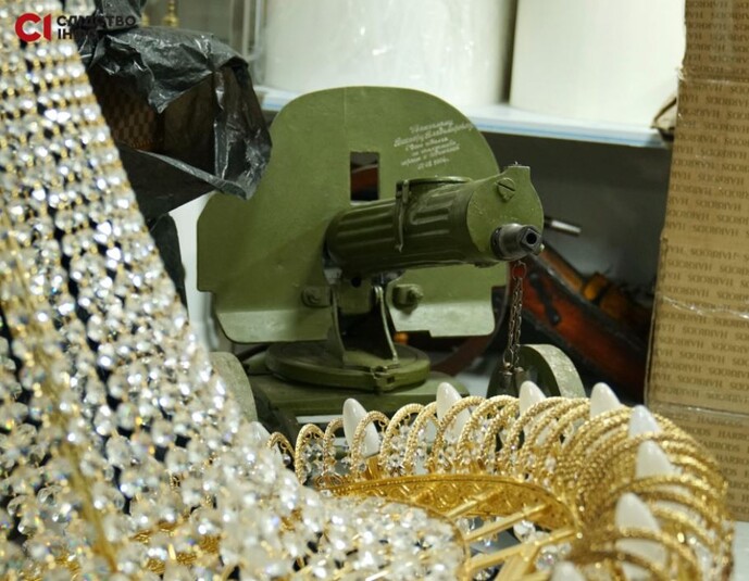 Такого количества дорогостоящих вещей на один квадратный метр мы еще не видели! Комнаты заставлены картинами, иконами, гобеленами и статуэтками. Большинство из них просто лежат друг на друге. Среди картин поставили игровой автомат Admiral XXXL.