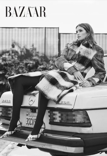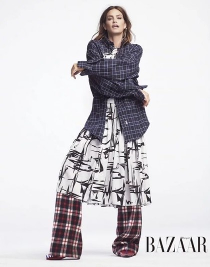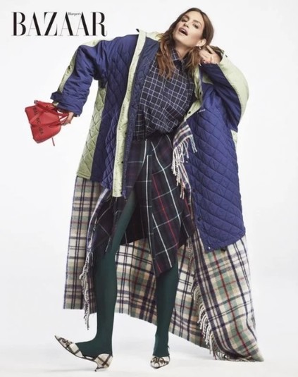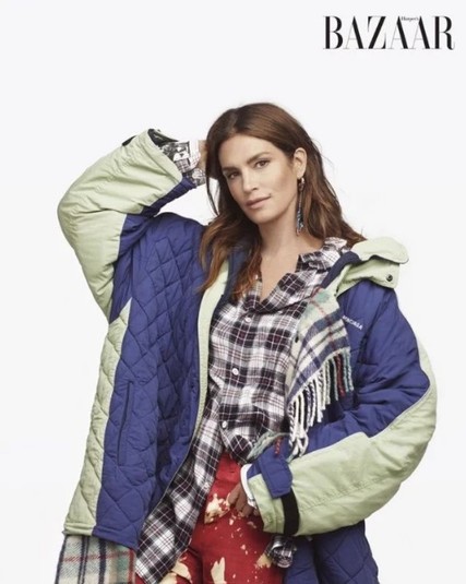 Среди стильных образов на Синди можно увидеть такие марки, как Balenciaga, Calvin Klein, Ellery и Off-White. В фотоистории Кроуфорд предстала в oversize-накидках, куртках и пальто, а также в пиджаках и тренчах свободного кроя. Звезда также примерила мини-юбки, рубашки и обувь в ячейку, вещи из искусственного меха, а также остроносые каблуки. Относительно цветовой гаммы, то в «луках» преобладает бордовый, коричневый и синий цвета.