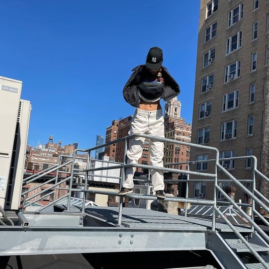 «Ангел» Victoria’s Secret взобралась на пожарную лестницу офисного здания. Младшая сестра Джиджи раскинула руки в стороны и забавно танцевала, нежась под утренним солнцем. Модель также совершила провокационную выходку. Белла подняла футболку и показала, что под ней нет нижнего белья. Хадид игриво улыбнулась.