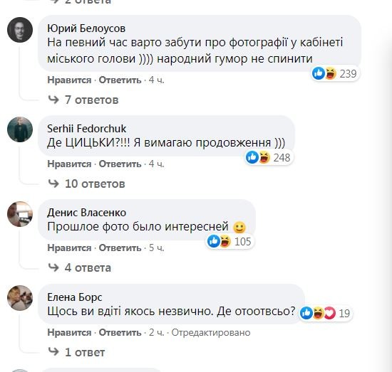 Под фотографией мэра люди оставляют немало шутливых комментариев, вспоминая Садовому скандальное фото с эффектной чиновницей, одетой в провокационное платье: