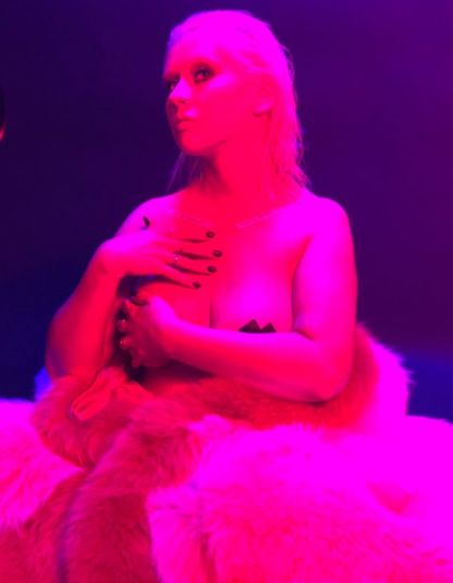 Этой осенью певица отправилась в тур «Освобождение», это ее первый тур за 12 лет после тура 2006 года «Назад к основам».Агилера была номинирована на Грэмми на прошлой неделе за сотрудничество с Деми Ловато, песней Fall in Line.