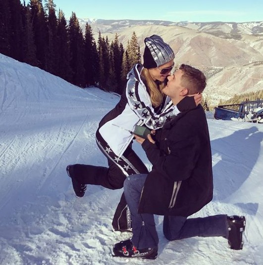 По словам эпатажной блондинки, Крис сделал ей предложение на горнолыжном склоне в Аспене. Конечно же, романтический момент был запечатлен на фотокамеру и Пэрис молниеносно опубликовала снимки в Instagram.