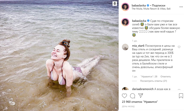 На своей странице в Инстаграме, 35-летняя звезда опубликовала фото, на котором позирует в бикини, нежась в волнах океана. На снимке Слава появилась без косметики, демонстрируя свой пышный бюст.